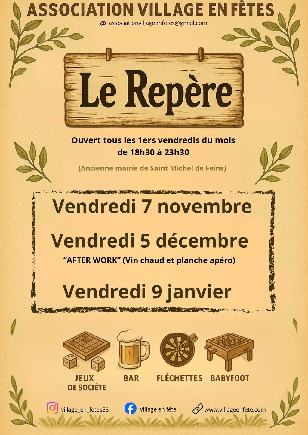 "Le Repère" se veut un rassemblement ouvert à toutes et tous, où l’on cultive l’esprit associatif, la bonne humeur et la proximité. Plus qu’un simple bar, c’est un projet collectif qui a pour ambition de renforcer le lien social au cœur du village.
